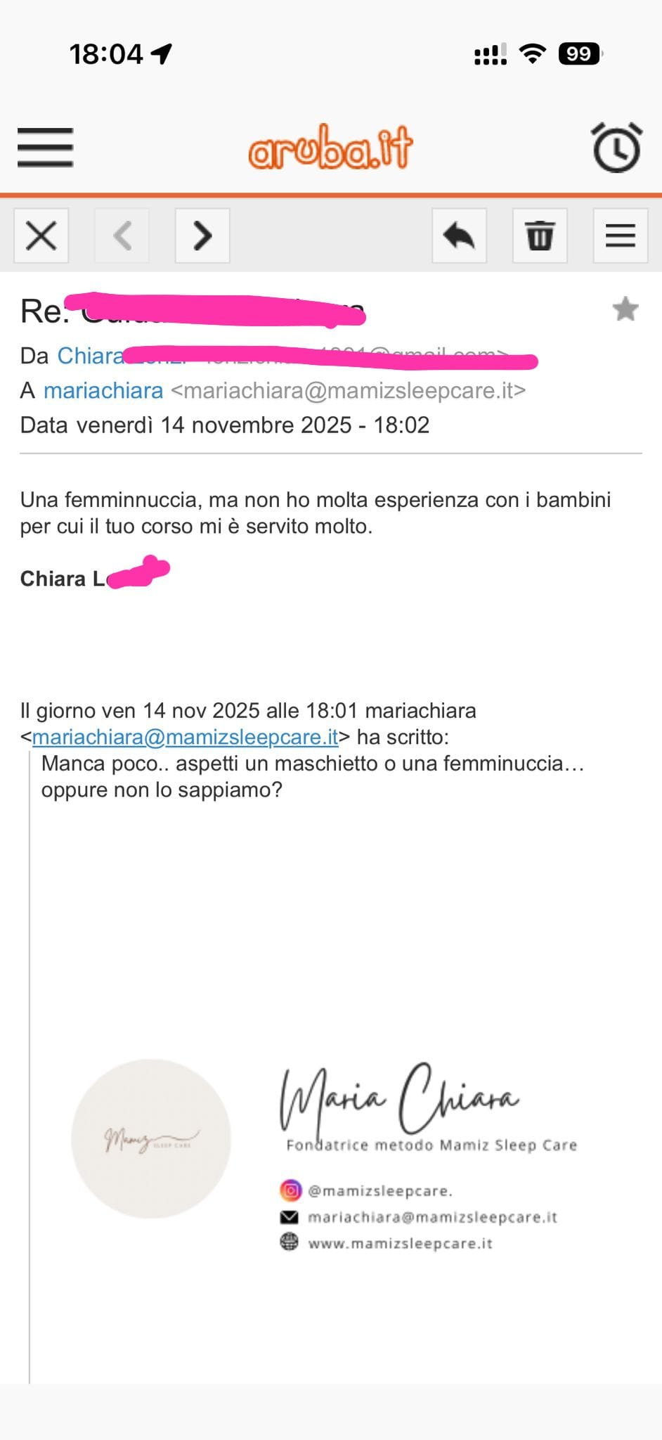 Hai domande? Scrivimi a: mariachiara@mamizsleepcare.it